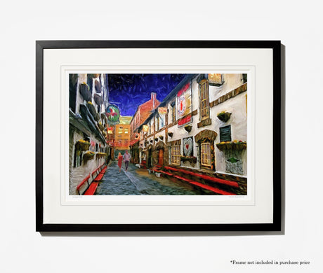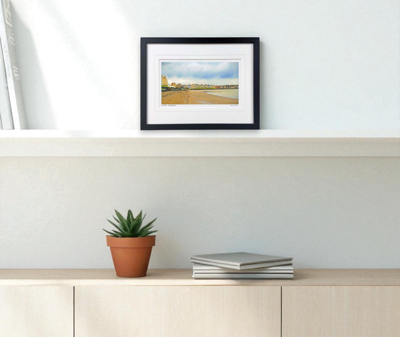 Bought this as a gift. The recipient was delighted as the image captures a special place for them and where they walk their dogs. The colours are bright and inviting. One can stare for ages following the high street and distant views of the mountains.
