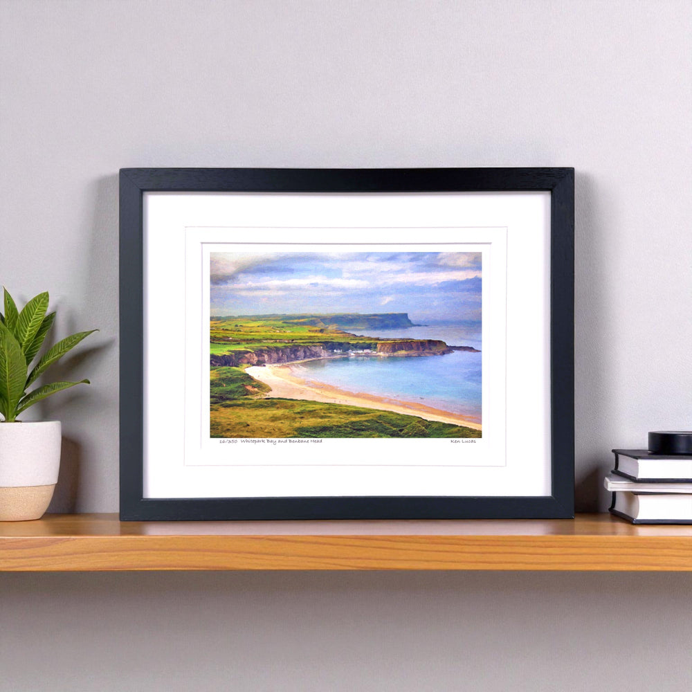 Whitepark Bay & Benbane Head - Framed - Small print is backordered and will ship as soon as it is back in stock.